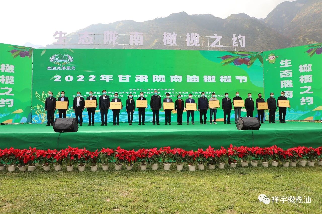 11月2日,由國家林草局指導,隴南市委市政府、甘肅省林草局、中國經(jīng)濟林協(xié)會主辦的2022年中國農(nóng)民豐收節(jié)系列活動·甘肅隴南油橄欖節(jié)在祥宇生態(tài)產(chǎn)業(yè)園隆重開幕。