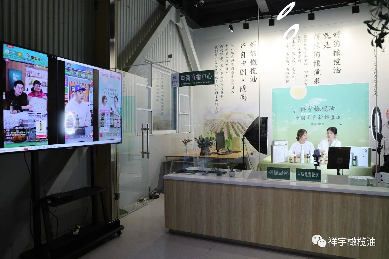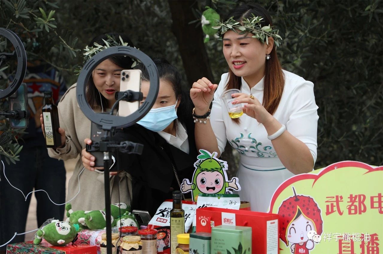 在祥宇生態(tài)產(chǎn)業(yè)園與賀家坪油橄欖基地的直播現(xiàn)場,主播們圍繞橄欖油、橄欖菜,用現(xiàn)場展示、品鑒體驗等方式向外界推介宣傳,直播間氣氛異?;钴S。