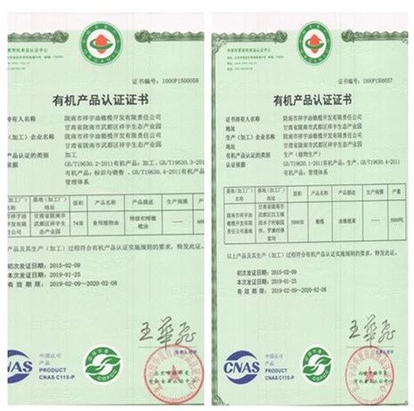 有機(jī)認(rèn)證證書(shū)