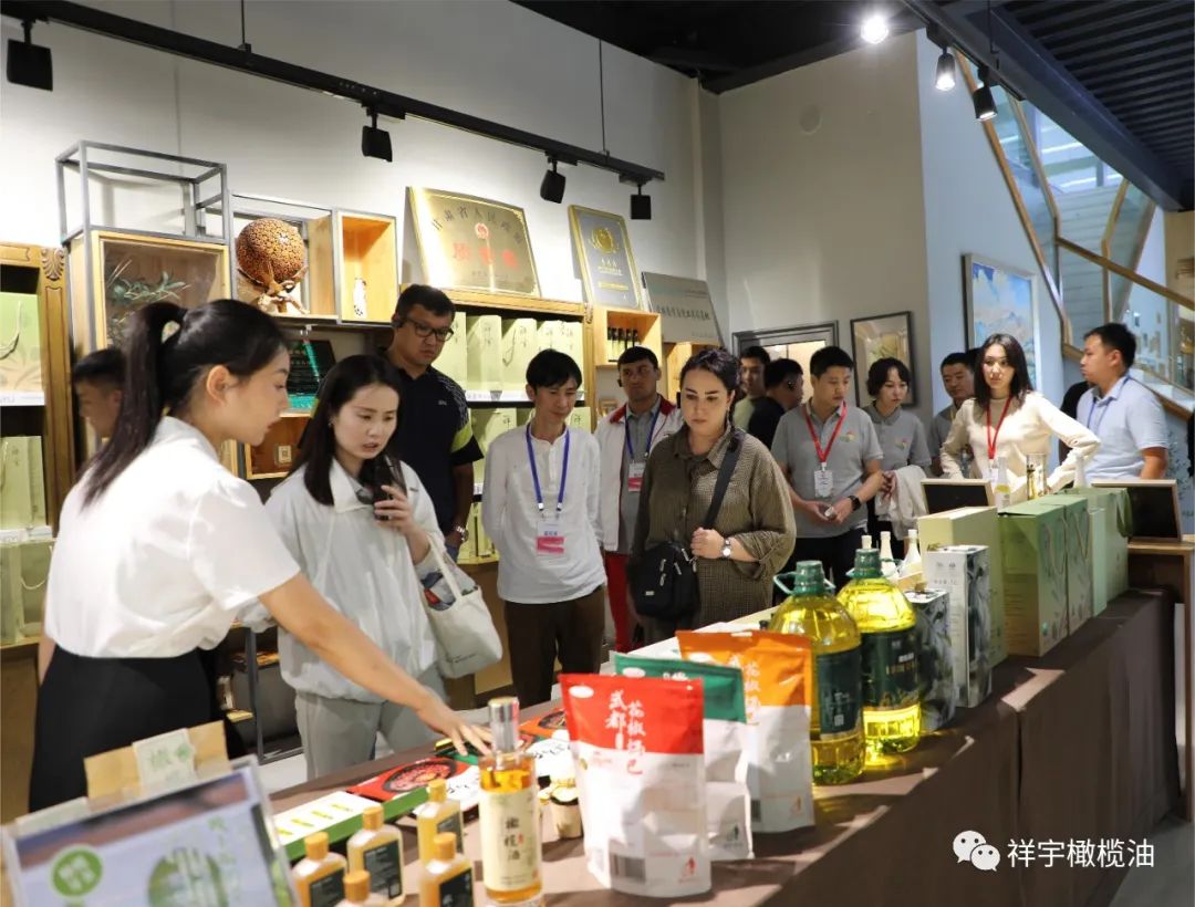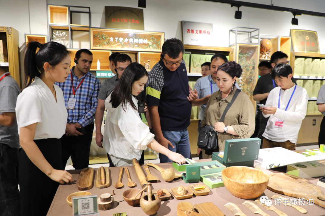 中亞五國(guó)青年代表駐足產(chǎn)品體驗(yàn)區(qū)品嘗橄欖美食,