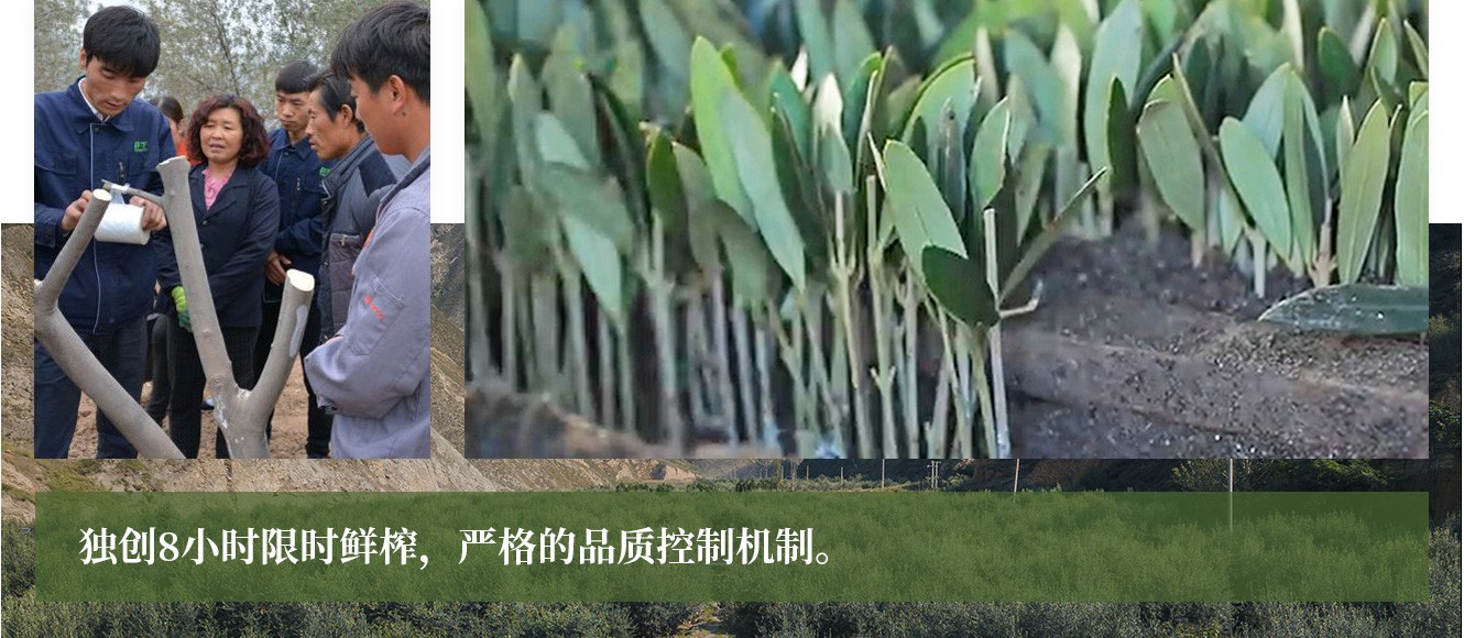 公司從產(chǎn)業(yè)鏈起始端著手,引進(jìn)良種優(yōu)苗,繁育基地苗圃,優(yōu)化樹種,以優(yōu)質(zhì)的橄欖樹苗為生產(chǎn)特級(jí)初榨橄欖油提供基礎(chǔ)保障 ,在以自建萬畝國(guó)家標(biāo)準(zhǔn)化油橄欖種植基地、簽訂合作社及農(nóng)戶的基礎(chǔ)上,經(jīng)過多年的試種改良,培育出掛果率出油率高、耐寒耐旱且適宜隴南市栽種的萊星、鄂植8號(hào)、阿斯、科拉蒂、皮瓜爾、皮削利等多個(gè)優(yōu)良品種。